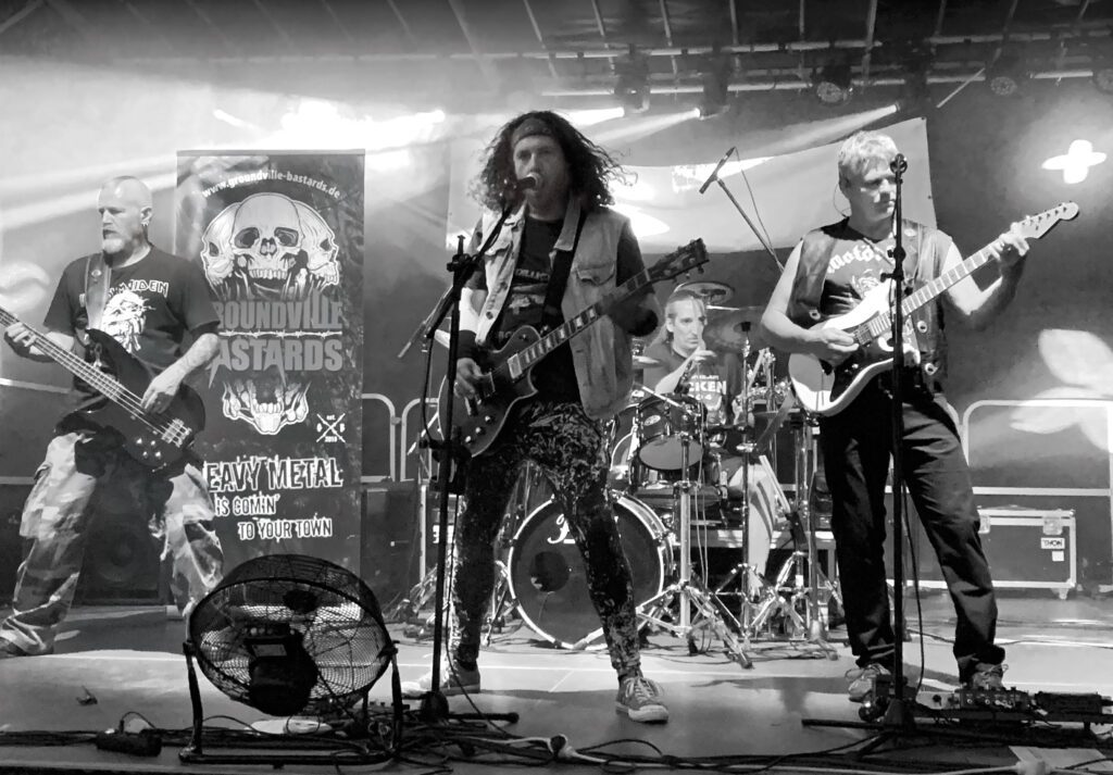 Die Groundville Bastards sind eine Old School Heavy Metal Band aus Mainz, die jede Bühne zum Beben bringt. Mit kraftvollen Riffs und unbändiger Power erwecken sie die größten Hits von Metallica, Iron Maiden, Judas Priest, Black Sabbath, Motörhead und Co. zum Leben. Seit 2019 begeistern die vier leidenschaftlichen Musiker ihre Fans mit authentischen Sounds und liefern dir die perfekte Mischung aus Energie und Nostalgie. Ob alteingesessene Metalheads oder neue Fans – bei einem Konzert der Groundville Bastards bleibt kein Fuß still und kein Nacken unbewegt. Schnappt euch eure Lederjacken und erlebt die pure Magie des Heavy Metals live und hautnah!
